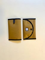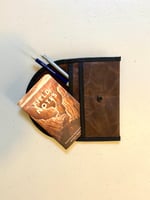 This pouch is made to keep your notebook and writing utensils protected and organized while you’re on the go. You can throw it in your pack on the way to the coffee shop, or take it on your next backpacking trip. Inside is a slot for a notebook and a separated area for pens and pencils, the lid is held securely in place with a snap button. The pouch is made for any notebooks that are 8.9 by 13.9 centimeters (3.5 by 5.5 inches).