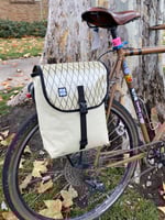 The Fremont Panniers are designed to be low profile, lightweight, secure, and easy to use micro-paniers for bikepacking and bike touring. The narrow profile only extends about 10.5 cm out from the rack, this keeps them out of the way when walking your bike through rough terrain. The bags Measure about 22cm wide and 28cm tall. The volume is about 7 liters per pannier and 14 liters for the set. The voile strap top attachment and bottom cam strap make this bag compatible with nearly any rack. The connection system is also easy to detach from your bike, just undo the two top straps and unbuckle the lower strap. Two aluminum tubing stays keep the bag stiff and solid. Under the lid flap is a cinch that can be tucked away if you want to use just the flap closure. The construction is highly water resistant (not completely waterproof). The Fremont Panniers are named after the Fremont River in Southern Utah.